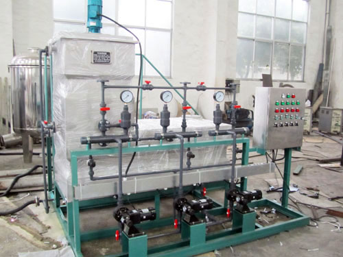 本機(jī)為整體安裝式,安裝方便,攪拌系統(tǒng)功率大并帶減振器,攪拌均勻.噪聲低,帶溶解槽筐和過(guò)濾器.藥液系統(tǒng)全部為防腐材料(環(huán)氧樹(shù)脂、PVC、PP、PE和不銹鋼等)耐腐性好。